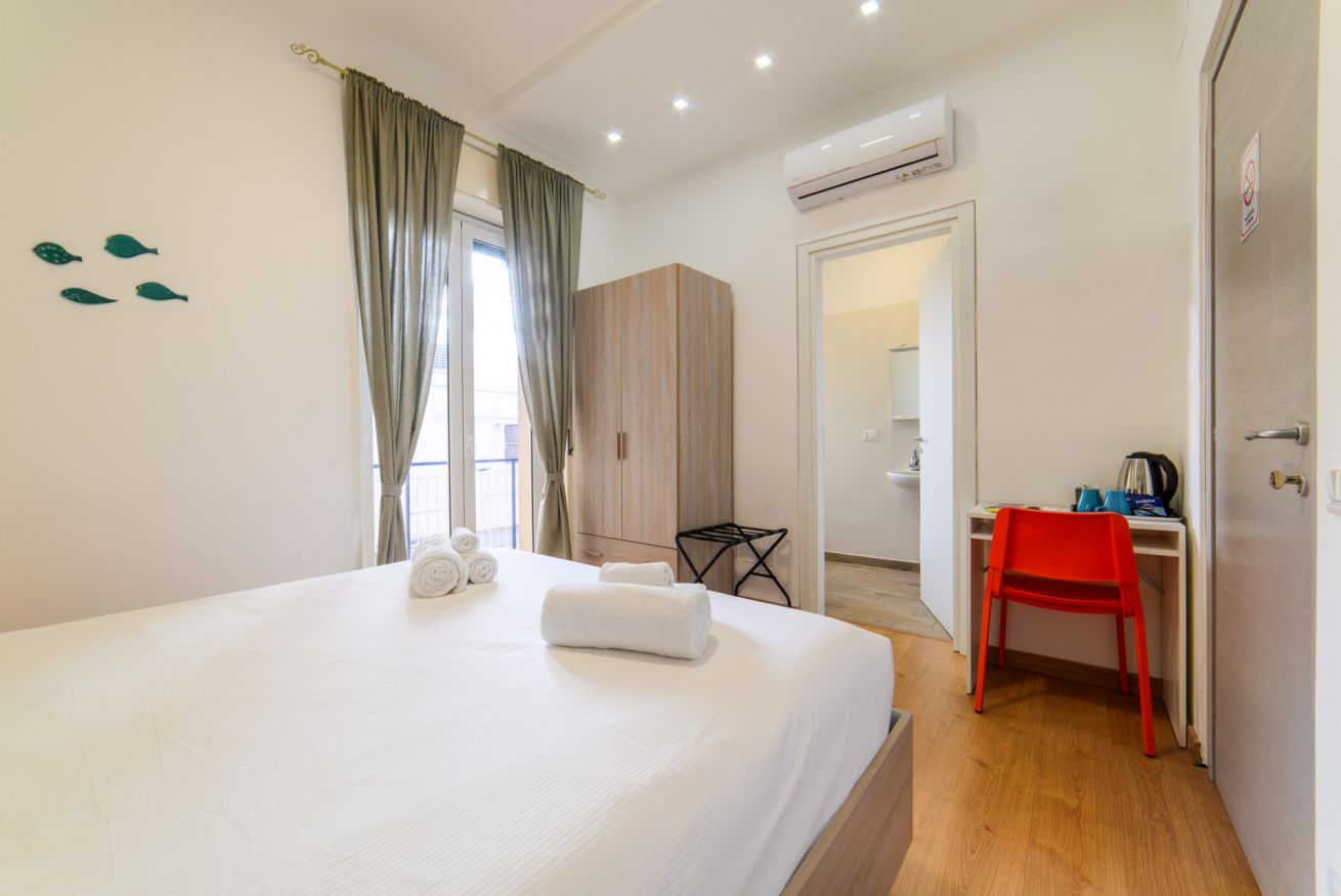 Camera Doppia con Balcone dotata di Bagno Privato, Aria Condizionata, WiFi Gratuito, Bollitore e Tisaneria